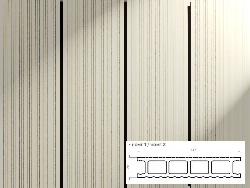 Perwood WPC terasové prkno Home - oboustranný komorový profil 147/28 mm - plochy upraveny jemnou a hrubou drážkou (povrch broušený). Standartní délka 4000 mm, u atypické délky je konečná cena závislá na objednaném množství.