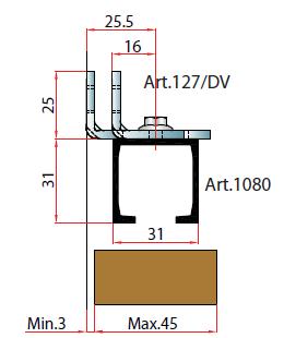TERNO bandeau supérieur pour quincaillerie intérieure pliante 1080/G 1,5m brut