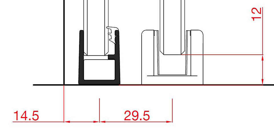 Barre de fixation inférieure pour verre fixe pour la quincaillerie Vetro 40, Vetro 40 Drag et Vetro 40 synchro.