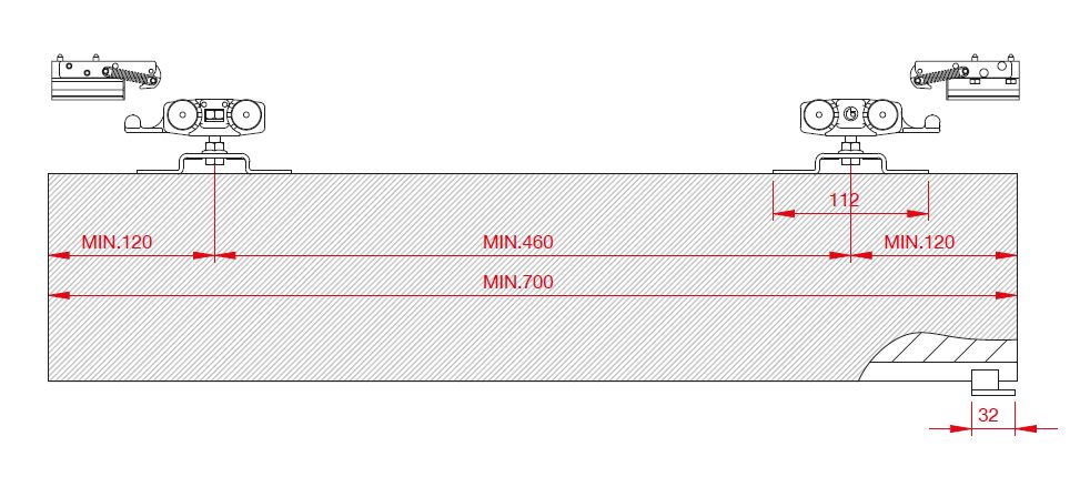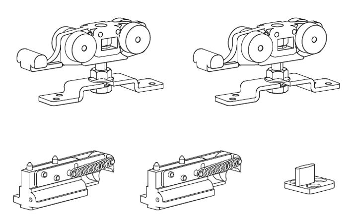 Ensemble de ferrures pour 1 vantail (largeur min. 600mm). Contient 2x amortisseur a huile, 2x chariot, 1x guide. Le guidage supérieur et les supports muraux doivent etre commandés séparément, voir assortiment connexe ci-dessous.