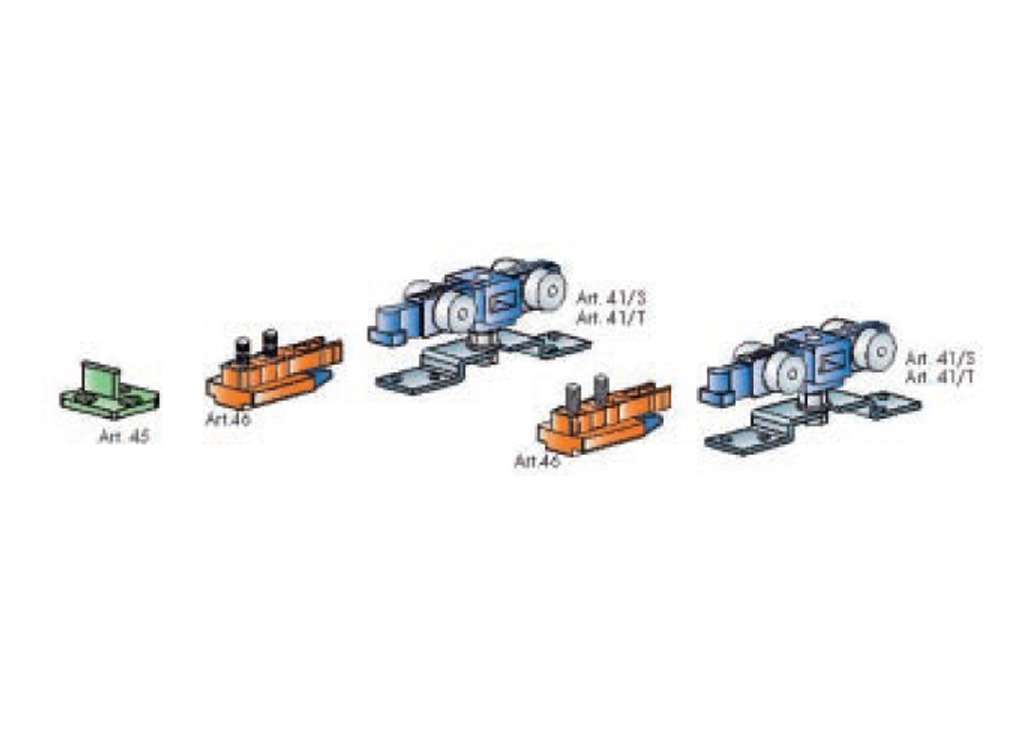 Ensemble de ferrures pour une porte battante sans amortissement. Capacité de charge des portes - max. 50 kg. L’ensemble comprend la quincaillerie pour 1 porte battante sans supports muraux - DT336. Le guidage supérieur et les supports muraux doivent etre commandés séparément, voir la gamme associée ci-dessous.