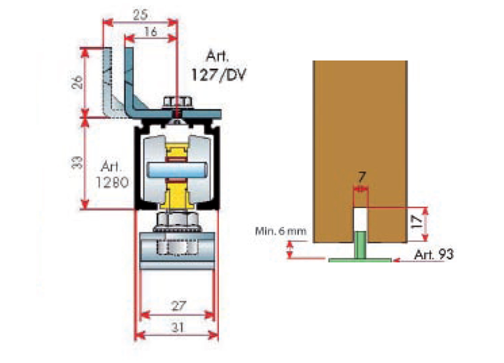 Quincaillerie pour porte intérieure coulissante jusqu'a 120 kg. Inclus 5 pcs de supports de profil. Le guidage supérieur et les supports muraux doivent etre commandés séparément, voir la catégorie associée ci-dessous.