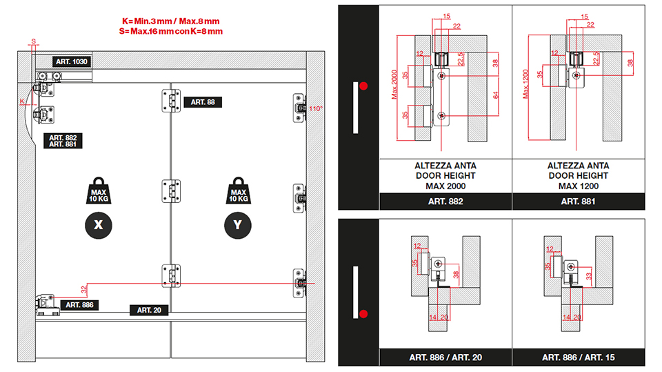 Remplacement pour ensemble de ferrures 87478 (DT410 + DT401 + 3 x DT402). Profils concernés : supérieur (DT412-DT414), inférieur (DT406-DT408).
