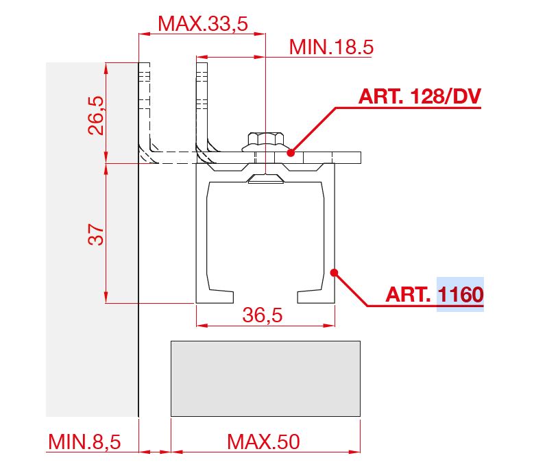TERNO guidage supérieur 160kg 1160/A elox 2m