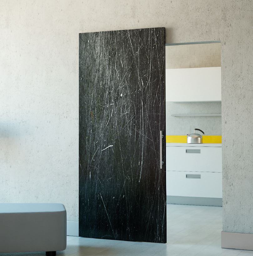 Le rail de guidage est installé dans l’ouvrant de la porte, le chariot supérieur de guidage est toujours caché derriere l’ouvrant.