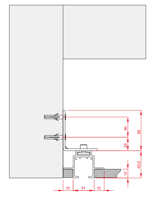 Support du guidage supérieur pour fixation dans la paroi latérale au-dessus du plâtre.