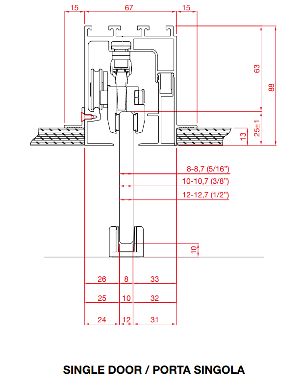 TERNO Solo Vetro Light guidage supérieur 2250/A alu anodisé argent 6m