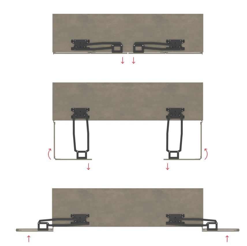 Ensemble complet de quincaillerie pour 2 portes pliantes Pour corps d'armoire 1122mm (+- 2mm). Largeur d'un vantail 547mm (+- 1mm). Recouvrement 5 - 12mm, selon l'épaisseur des panneaux latéraux de l'armoire. Poids maximal des deux vantaux - 35 kg. Épaisseur des portes 18 - 22mm. Couleur blanc RAL9002, peinture en poudre.