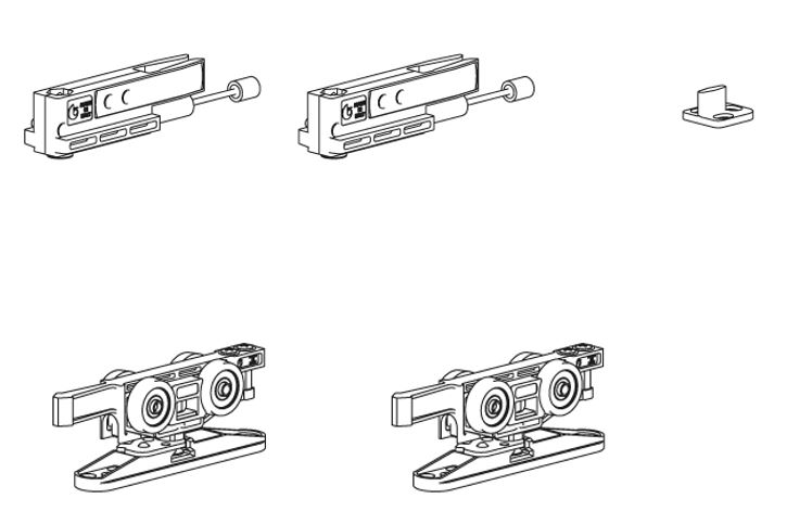 Ensemble de ferrures pour une porte battante avec absorbeurs de chocs a la fermeture. Roulettes tournées sans roulement a billes. Capacité de charge de la porte - max. 50kg. L'ensemble comprend la quincaillerie pour 1 battant sans supports muraux. Largeur minimale du battant 600mm. Montage et démontage simples, avec un réglage de la hauteur du battant plus facile comparé a la version Classic originale. Les supports du chariot peuvent etre fraisés, ce qui réduit l’écart entre la porte et la guidance supérieure jusqu’a 11mm.