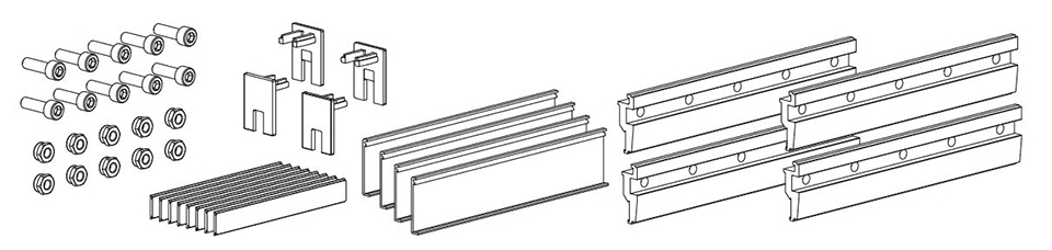 L'ensemble fait partie des ensembles de quincaillerie Vetro 40 pour portes intérieures coulissantes en verre. L'ensemble comprend tout pour la fixation des chariots sur un remplissage en verre de 12 a 12,7 mm. Le verre ne nécessite pas de perçage.