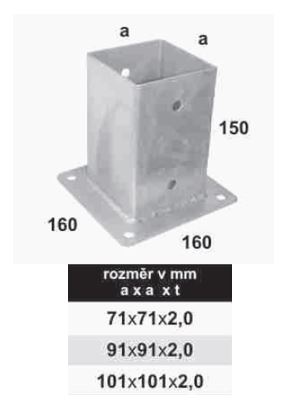 TK-botka d'ancrage carrée 101x101x2,0mm zinguée