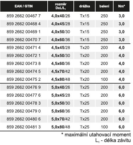 RAPI-TEC® TERASO, acier inoxydable trempé C Haute résistance • Résistance a la corrosion conditionnelle. • Ne résiste pas a l'action des acides. • Inadapté pour les bois a haute teneur en tanins, par ex. chene, acacia, bois exotiques. • Inadapté pour les environnements contenant du chlore. • Couple de torsion supérieur a la rupture par rapport a l'acier A2 et A4. • L'acier inoxydable trempé est magnétique.