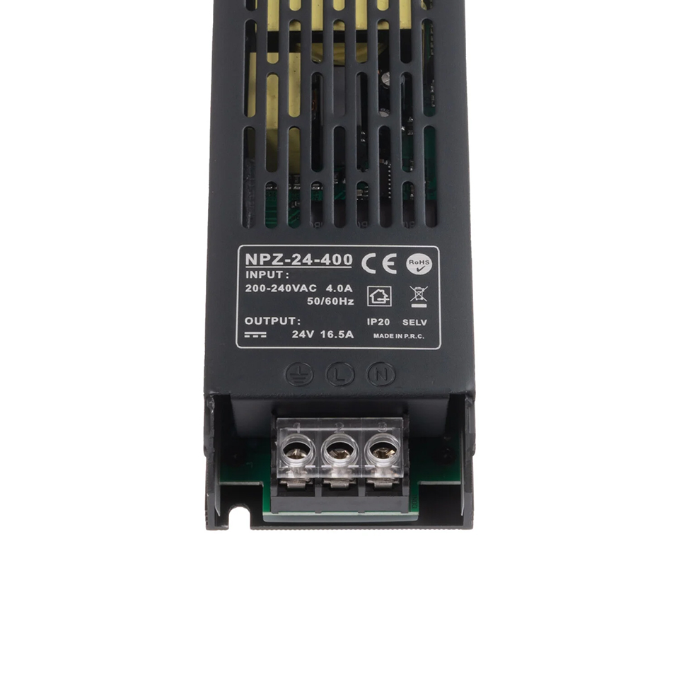 LED électronique alimentée commutée (trafo) 24V 400W en couvercle IP20 est destinée a un usage intérieur. Convient pour les produits LED basse tension tels que les bandes LED, les ampoules LED et autres éclairages LED. L’alimentation LED pour éclairage LED est équipée de : fusible contre les courts-circuits (apres suppression du court-circuit, elle est a nouveau pleinement fonctionnelle), fusible contre la surcharge. Attention. La charge maximale permanente recommandée inclut une réserve minimale de 20 % pour un usage courant, pour une installation dans des locaux commerciaux avec un temps d’utilisation de 8 heures ou plus par jour en continu, une charge permanente recommandée avec une réserve minimale de 30 % est nécessaire compte tenu de l’efficacité des alimentations commutées, afin de préserver la durée de vie la plus longue possible de l’alimentation.