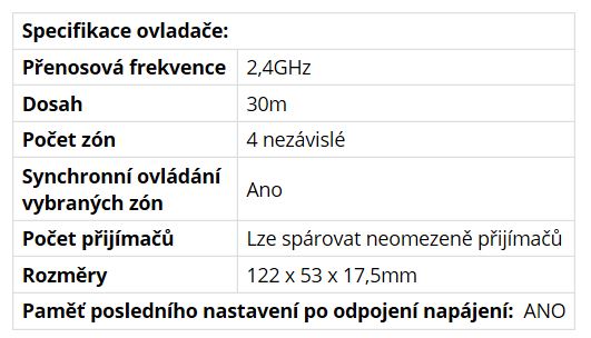 La télécommande dimLED OVM ALLMIX 4KM est un systeme de commande radiofréquence sans fil, composé d’une télécommande unique et de plusieurs récepteurs. Avec une seule télécommande, il est possible de contrôler indépendamment 4 zones, chacune pouvant etre composée de plusieurs récepteurs. Ces récepteurs, une fois synchronisés sur une mémoire prédéfinie de la télécommande, sont commandés comme une seule section. La télécommande ALLMIX 4KM peut etre utilisée pour la commande de bandes LED monochromes, CCT, RGB ou RGBW. Ainsi, avec une seule télécommande, vous pouvez contrôler a la fois des bandes LED monochromes et des bandes LED RGB, sans avoir besoin de deux télécommandes différentes. Le récepteur peut etre caché (derriere un mur, un placoplâtre ou dans une armoire), la visibilité directe du récepteur par la télécommande n’est pas nécessaire. Caractéristiques et avantages du systeme dimLED : Le gradateur est stable et fiable, portée de la télécommande ? 30M. Gradation entre 0-100 %, gradation douce, sans scintillement. A l’allumage, la montée en luminosité est progressive, a l’extinction, l’obscurcissement est progressif.