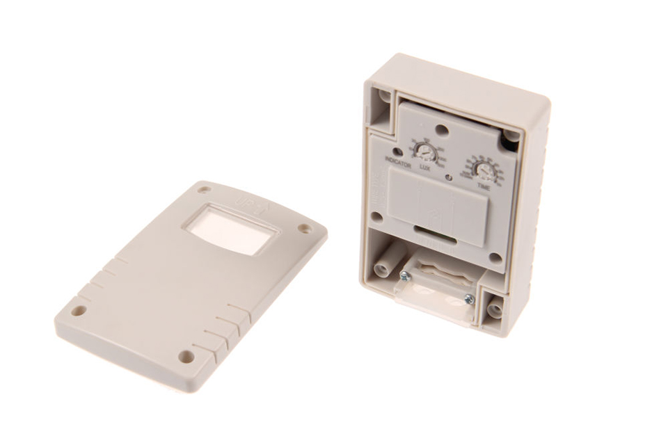 Interrupteur crépusculaire SS-T1 avec cellule photoélectrique sur 230V allume ou éteint automatiquement l’éclairage en fonction du niveau d’intensité lumineuse. L’extinction peut également etre réglée par un minuteur. En cas de désactivation du minuteur, l’interrupteur fonctionne uniquement selon le réglage du niveau d’intensité lumineuse LUX au-dessus du seuil de sensibilité défini. Cet interrupteur est utilisé pour commander l’éclairage au crépuscule et la nuit (éclairage de rue et de jardin, éclairage publicitaire, vitrines …).