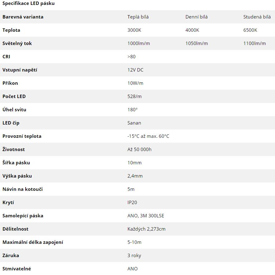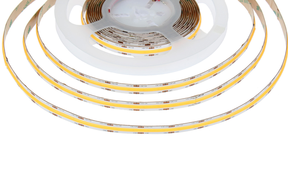 La série de rubans LED COB est une série spéciale de bandes LED, ou les puces LED sont encapsulées dans une couche de luminophore, ce qui assure un éclairage homogene du ruban LED sans visibilité des diodes individuelles. Le ruban LED COB peut donc etre utilisé, par exemple, dans des installations ou il n'est pas possible d'utiliser un profil approprié avec un couvercle laiteux, qui uniformise habituellement la lumiere du ruban LED en une seule ligne. L'encapsulation dans le luminophore augmente également l'angle d'éclairage des rubans LED COB a 180°. Les rubans LED COB peuvent etre utilisés comme éclairage pour des applications décoratives et publicitaires, dans les vestiaires, sur les escaliers, etc.