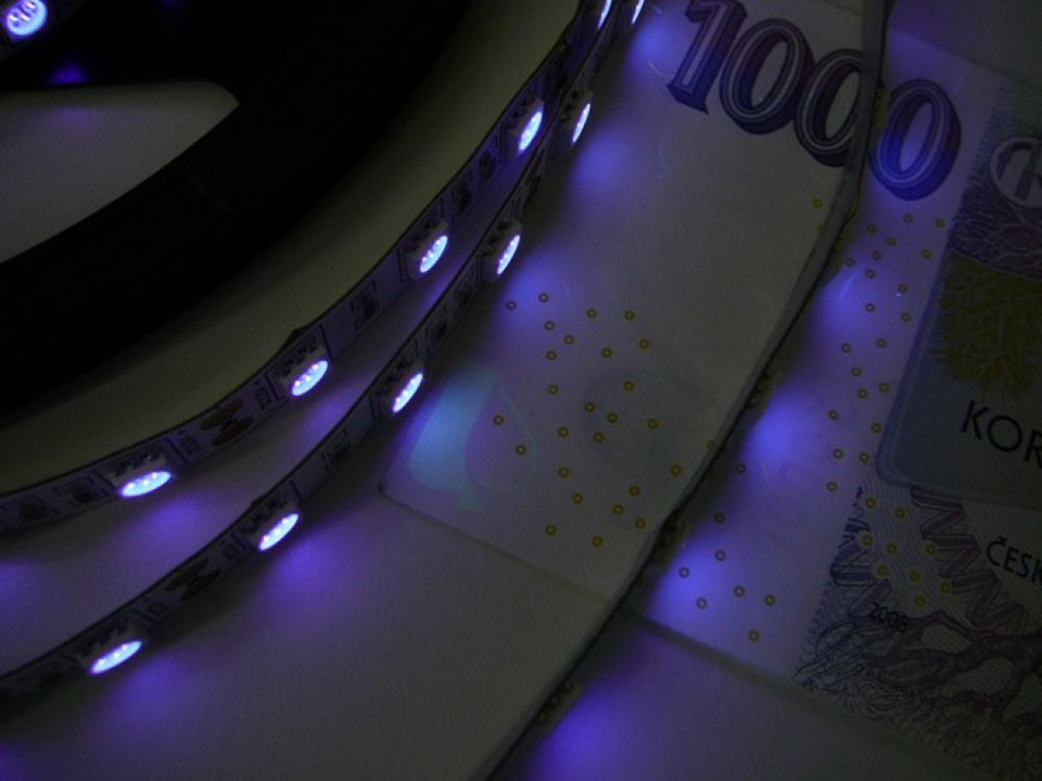 Les bandes LED avec lumiere ultraviolette sont utilisées pour l’éclairage des aquariums, terrariums, discotheques ou comme lumiere noire. Les diodes de cette bande LED sont des diodes UV originales, et non simplement recouvertes d’un luminophore UV spécial comme sur les modeles moins chers.