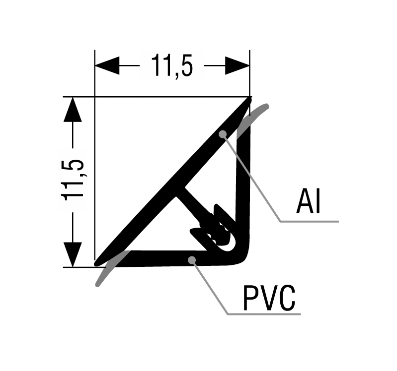 Super moulure L20, livrée avec des trous pré-percés pour vis a bois. Joint en caoutchouc transparent.