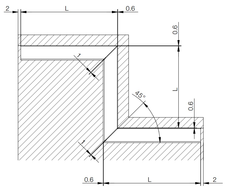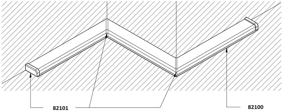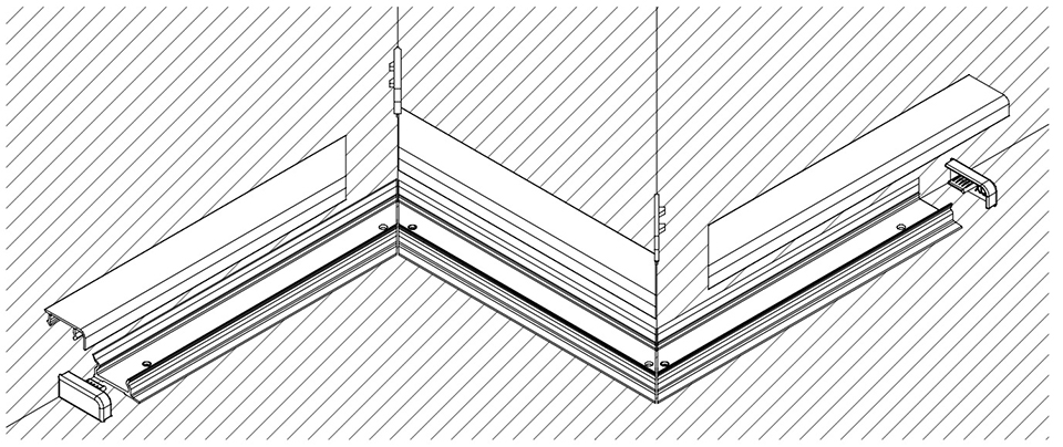 Ensemble pour joint de profilé TL6 comprend embouts gauche et droit, angle intérieur a 45°, angle extérieur a 45°.