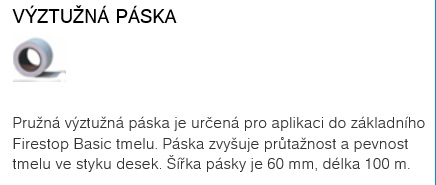 "Výztužná páska 100x0,06m" - K deskám OSB Firestop jsou k dispozici tmely pro základní a finální tmelení spolu s výztužnou páskou. Aplikace se provádí podobným způsobem jako spojování desek na bázi sádry.