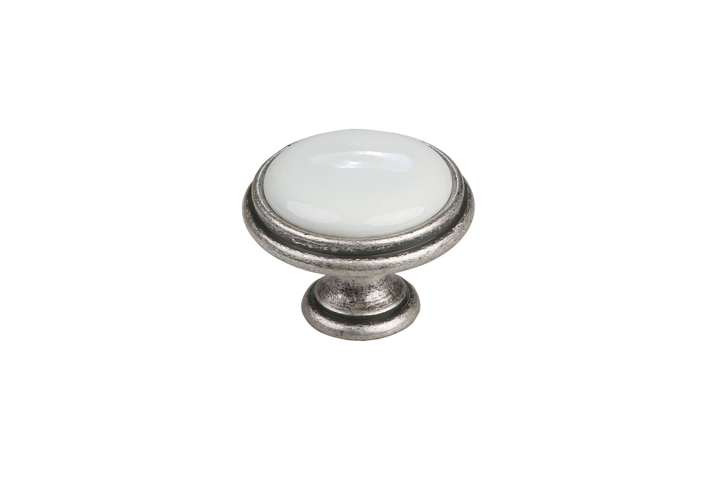 bouton finition argent ancien/porcelaine blanche, diametre 35 mm, hauteur 27 mm. les vis ne sont pas incluses dans l'emballage.