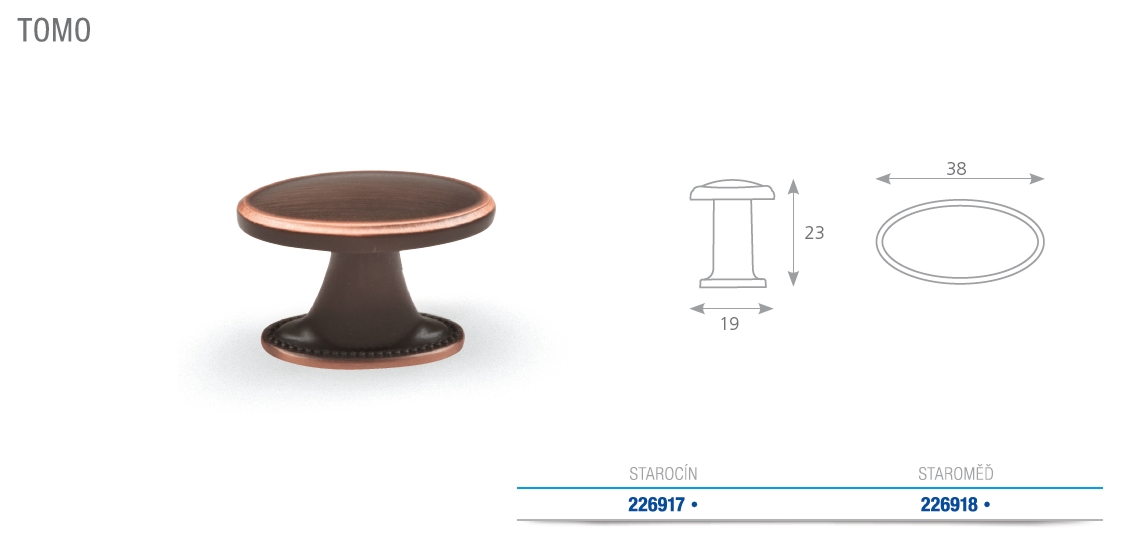 bouton - surface cuivre ancien, longueur 38 mm, largeur 19 mm, hauteur 23 mm, comprend des vis.