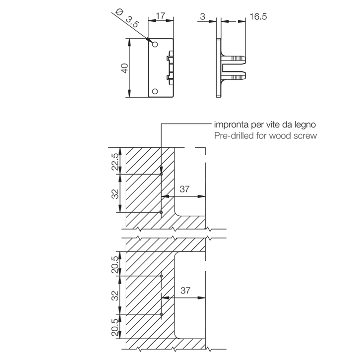 Ensemble contenant 2 attaches completes pour la fixation de profil de porte ou de tiroir. Nouveau type SU116 permettant la fixation du rail dans une armoire déja assemblée.
