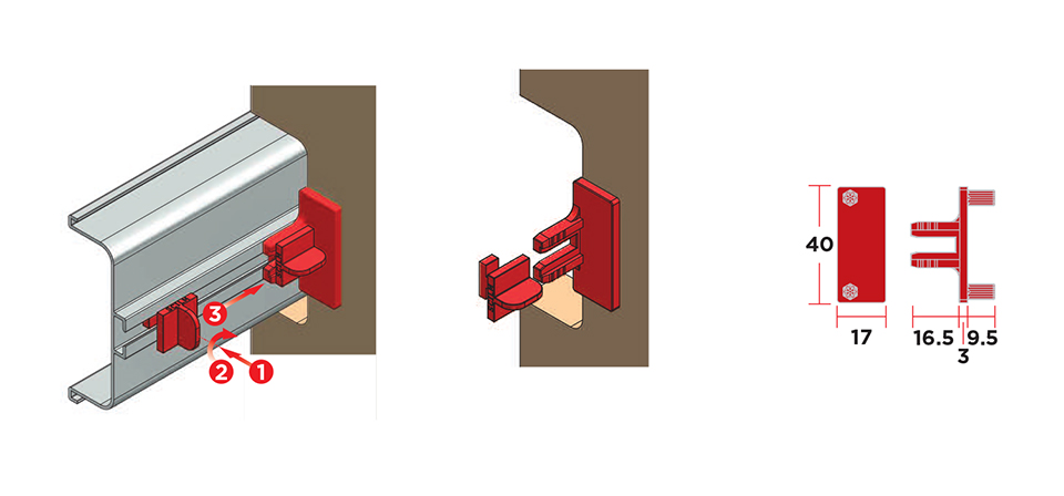 Ensemble contient 2 attaches completes pour la fixation du profil de porte ou de tiroir. Les attaches ne se vissent pas, elles ont des tenons.