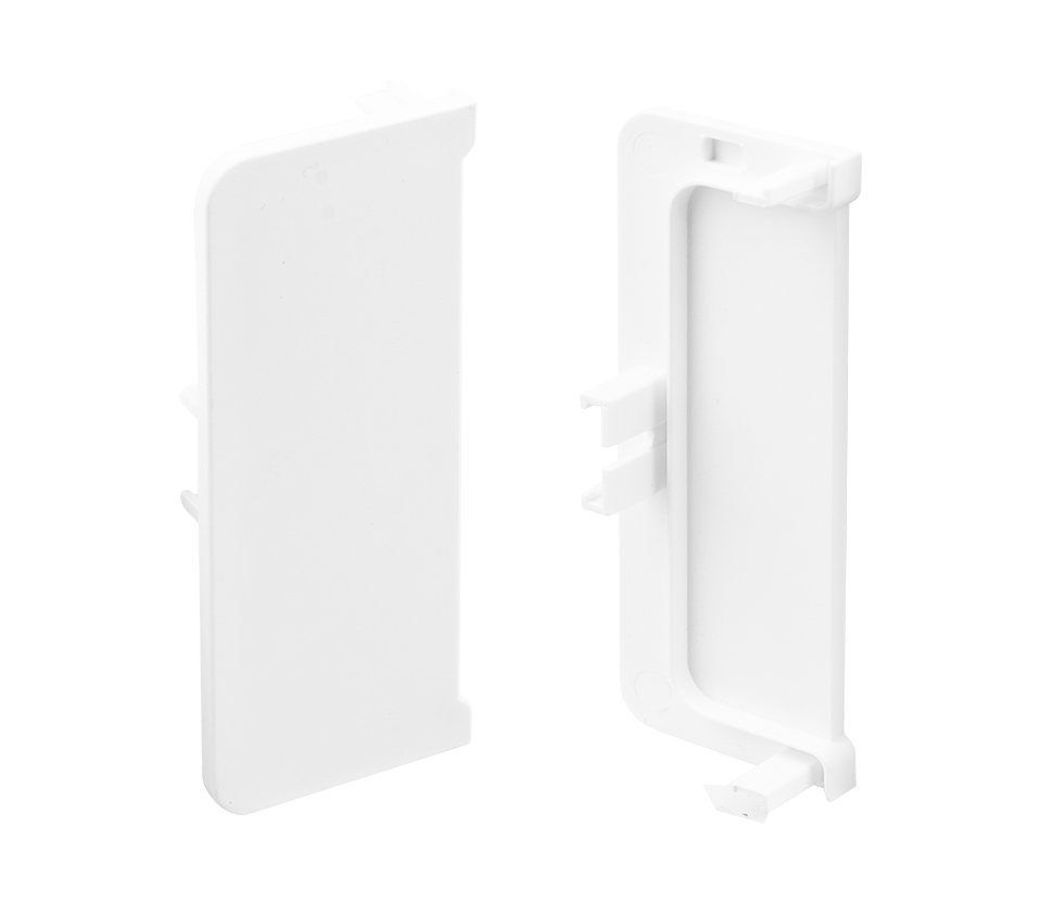 embout fermé pour profil de tiroir en C, couleur blanche, dimension 73 x 27,5 mm