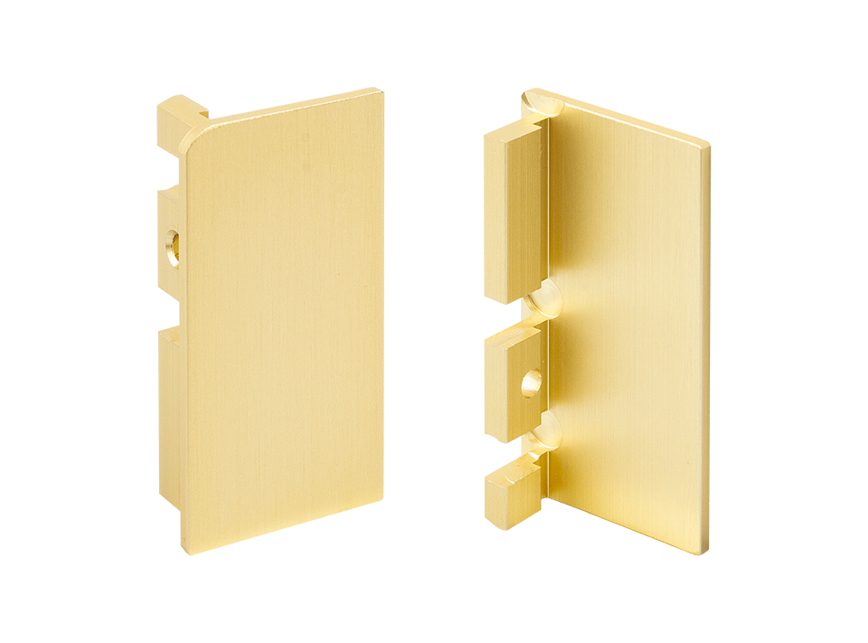 Embout fermé pour profil porte en J. Matériau aluminium - doré. Ensemble embout gauche + droit.