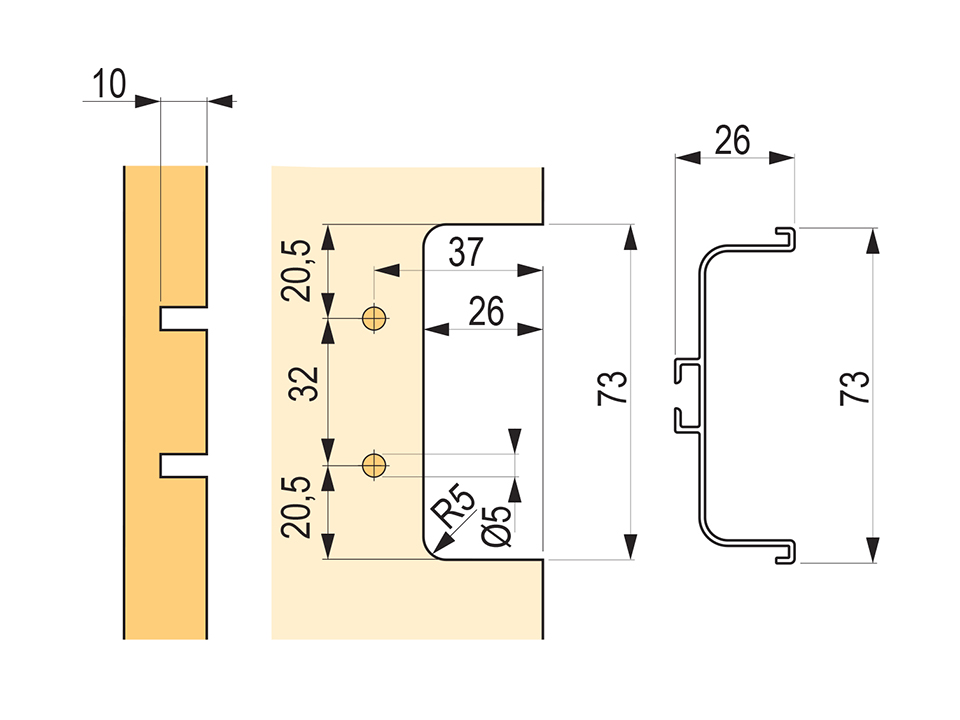 TULIP Gola II profil C tiroir imitation inox 2,9m