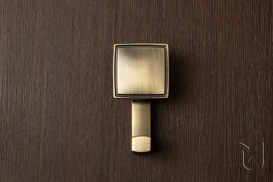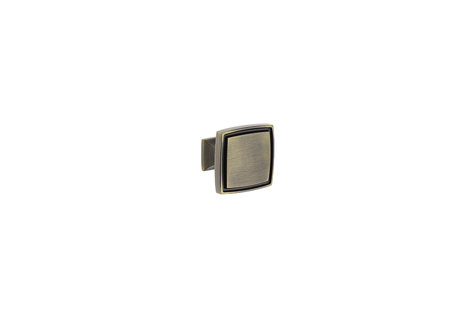 Bouton finition bronze ancien brossé, entraxe 16mm, longueur 36mm, largeur 36mm, hauteur 28mm.
