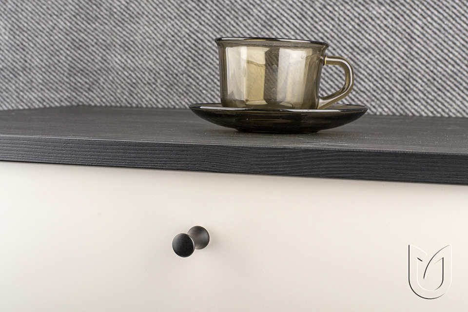 bouton, diametre 20,5 mm, hauteur 34,5 mm, surface nickel brossé, comprend des vis