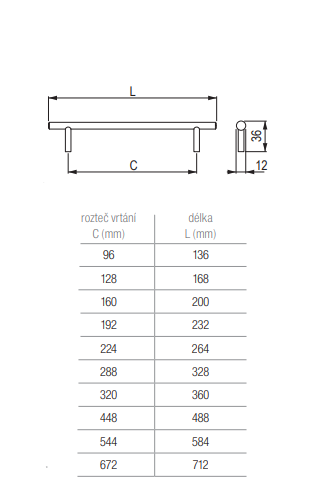 TULIP poignée barre de traction 96/136 noir mat + vis