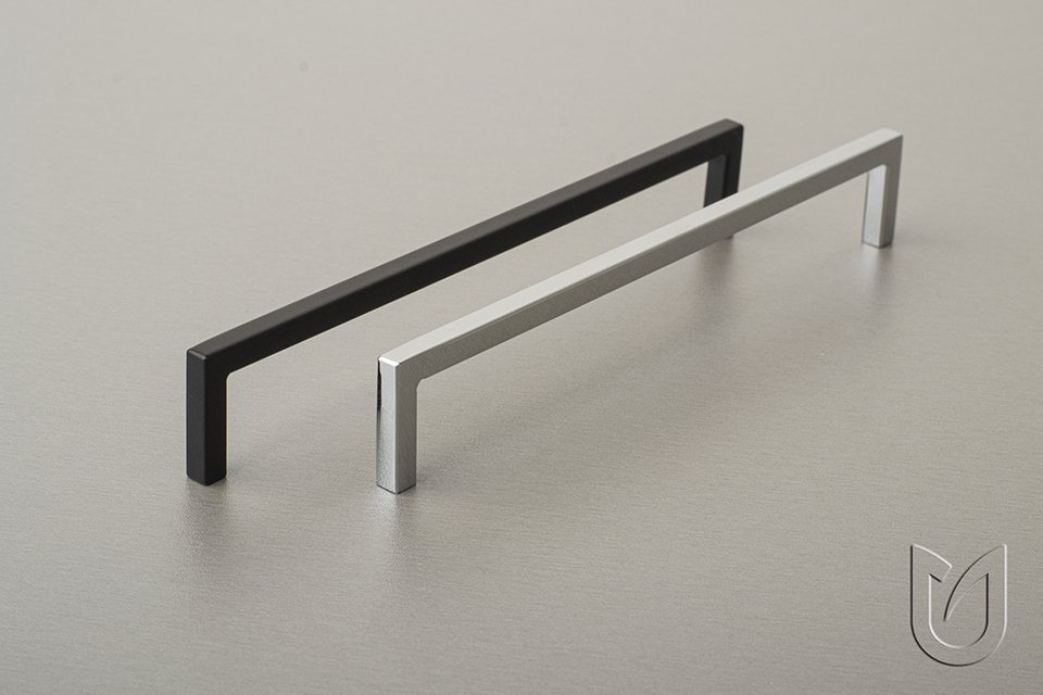 Poignée angulaire, adaptée notamment aux décors laminés UNI blancs, finition : chrome brillant, entraxe 160 mm, longueur 170 mm, hauteur 34 mm