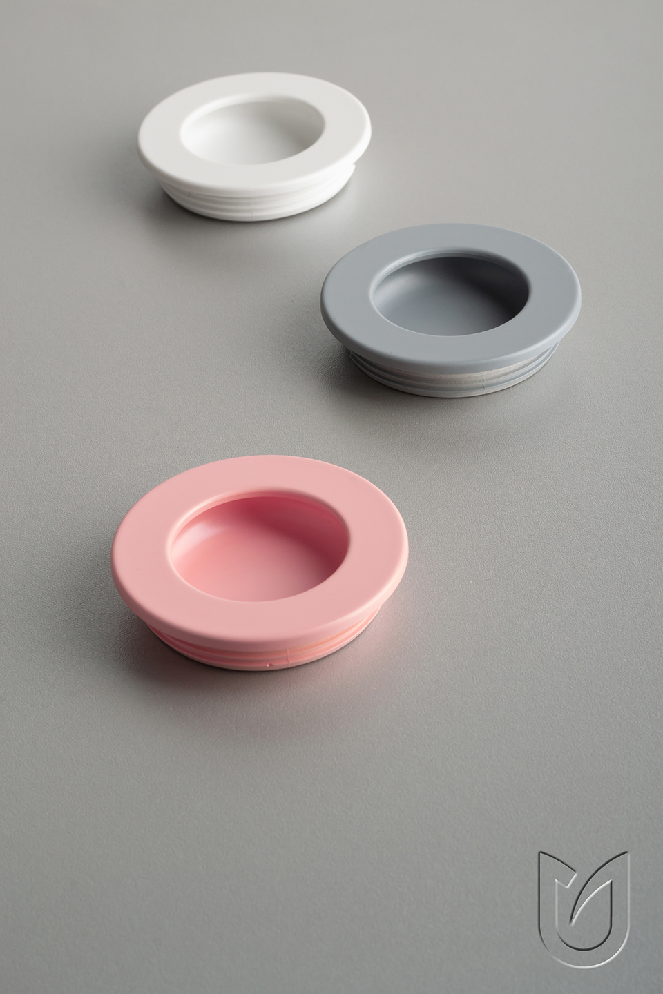 Poignée encastrée en plastique de diametre d60mm. Montage dans un trou d50mm.