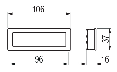Poignée encastrée en métal avec entraxe de 96 mm et longueur totale de 106 mm. Largeur : 16 mm Hauteur : 37 mm Dimensions pour fraisage : 103/34