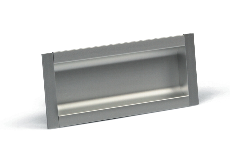 La poignée n'a pas d'encoche intérieure, adaptée pour portes coulissantes. Dimensions de l'encastrement (fraisage) 209 x 38 x 9 mm.