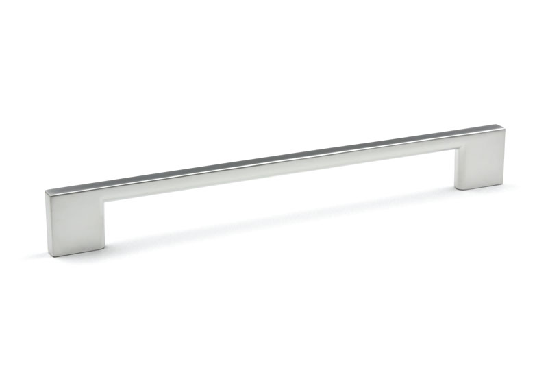 La poignée Nakana fait partie des modeles les plus polyvalents de notre offre et bénéficie d'une grande popularité. Il s'agit d'une poignée classique de forme simple, que nous proposons dans une large gamme de longueurs et de finitions. Les variantes plus courtes sont idéales pour les tiroirs, les petites commodes et armoires. Le modele avec des entraxes de 256 mm et 320 mm se distingue sur une armoire dans la chambre ou dans la cuisine. Que vous optiez pour le nickel brossé, le blanc intemporel ou le tres tendance noir mat, vous ne regretterez certainement pas le choix de la poignée Nakana.Poignée métallique en finition chrome satiné, entraxe 96 mm, longueur 130 mm, largeur 9 mm, hauteur 27 mm.