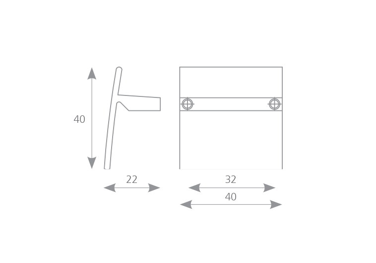 Entraxe 32 mm, hauteur 22 mm, longueur/largeur 44/40. Les vis ne sont pas inclus ! Doivent etre achetés séparément.