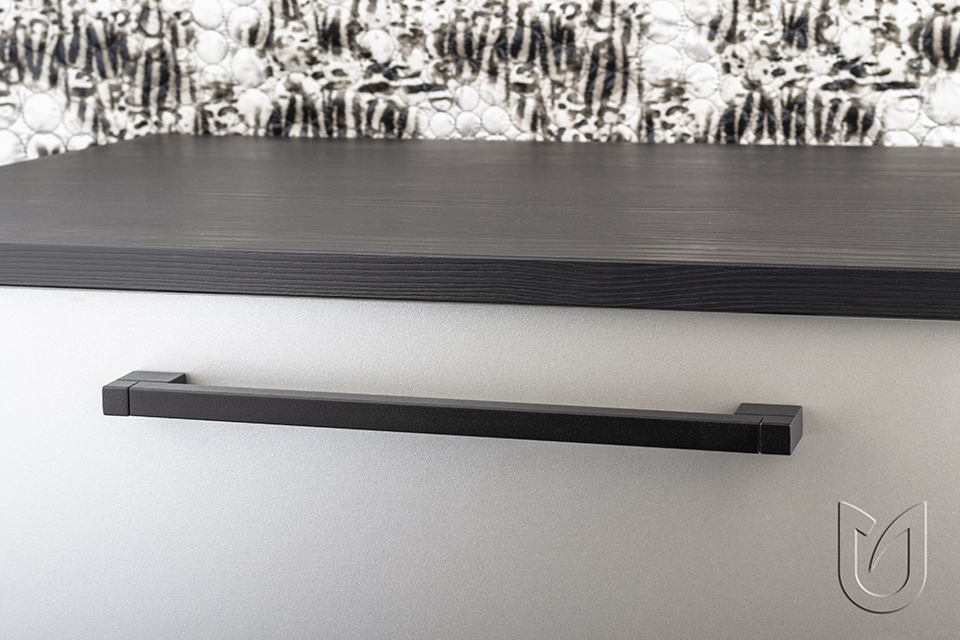 Poignée métallique noire mate. Longueur : 984mm Entraxe : 960mm Largeur : 12mm Hauteur : 30mm
