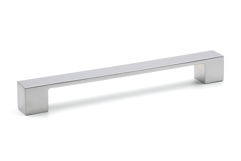 poignée métallique (matériau - alliage zinc-aluminium) avec finition satin chrome, entraxe 192 mm, largeur : 25 mm, hauteur : 26 mm