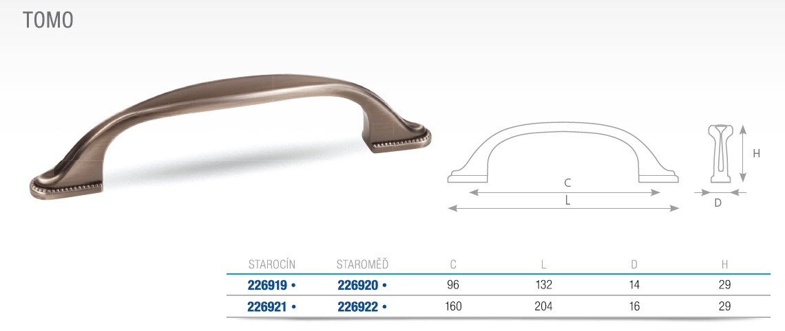 TULIP poignée Tomo 96 cuivre ancienne foncée