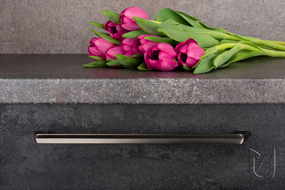 Finition : nickel noir brossé, longueur totale 180 mm, entraxe de perçage 160 mm, largeur 15 mm, hauteur 26 mm