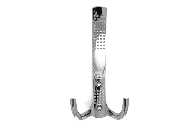 porte-manteau en métal avec finition chromée, hauteur 146 mm, largeur 78 mm, entraxe 32 mm montage avant