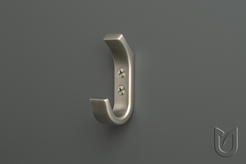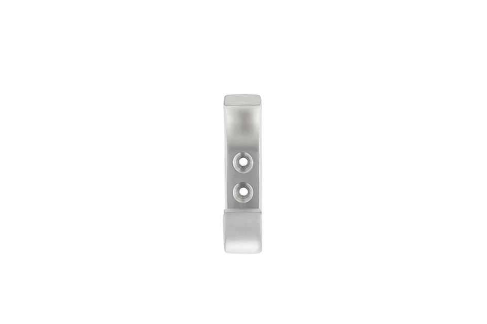 porte-manteau largeur 20 mm, hauteur 84,5 mm, longueur 42 mm, surface nickel satiné. Entraxe de perçage 25 mm. Montage frontal.