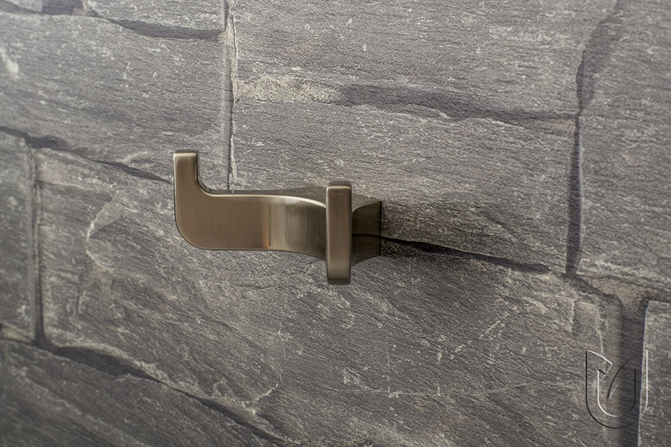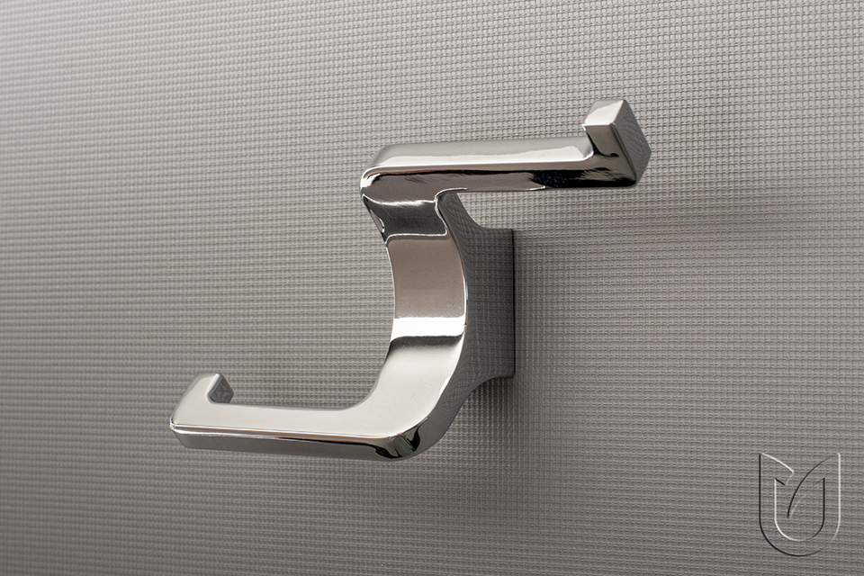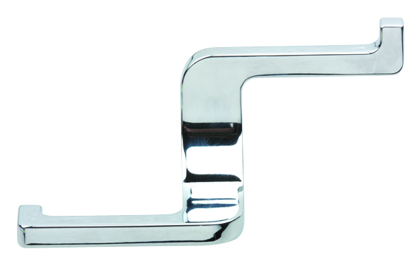Porte-manteau, montage avant, finition nickel satiné - vernis. Largeur 107,5 mm, hauteur 64,5 mm, profondeur 38,5 mm. Contient des vis.