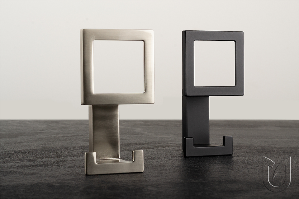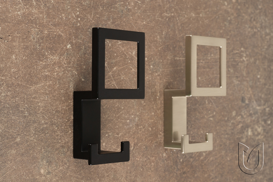 Porte-manteau métallique Hauteur : 101 mm, Largeur : 52 mm, Surface : noir mat // Le porte-manteau angulaire Marell en finition noir mat et nickel brossé remplit une fonction aussi bien pratique qu’esthétique dans chaque intérieur. La partie supérieure pratique et angulaire sert a accrocher manteaux ou chapeaux. Pour suspendre les vetements munis d’une boucle classique, deux petits crochets sont adaptés. Le design du porte-manteau est tres simple, moderne et intemporel.