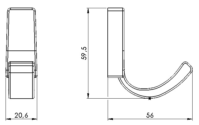 Porte-manteau métallique avec montage avant Entraxe : 20mm Largeur : 20,5mm Hauteur : 59mm