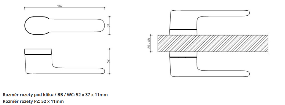 Dimension de la rosette sous la poignée / BB / WC : 52 x 37 x 11 mm Dimension de la rosette PZ : 52 x 11 mm